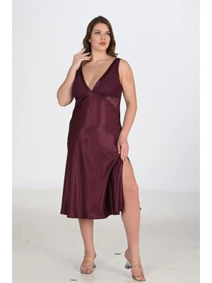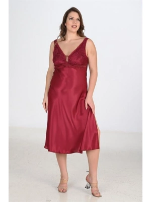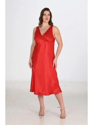 Kırmızı Dantelli Boyundan Askılı Göğüs Detay Gecelik Takımı