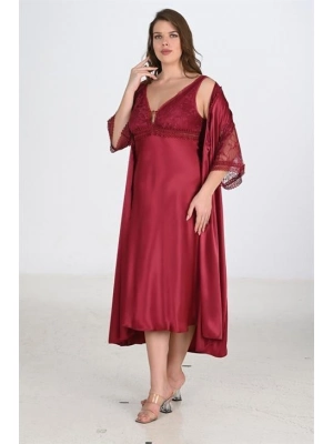 2li Kırmızı Sabahlık Takımı Bigsize 6226