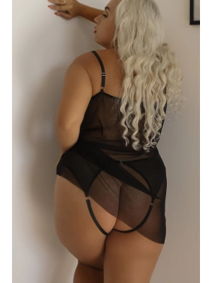 Transparan Siyah Büyük Beden Kısa Tül Gecelik Tm1304