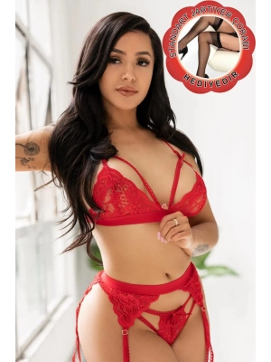 Kırmızı Dantelli Jartiyer Takımı Tm1240