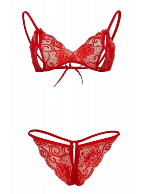 Kırmızı Dantelli Fantazi Sütyen Ve G-string Takım Tm2048