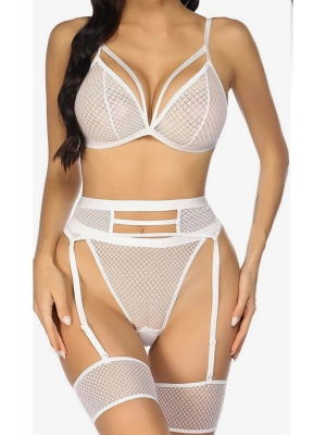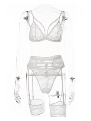 Beyaz Fantezi File Jartiyer Takım - 1038