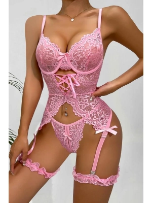 Özel Tasarım Dantelli Fantezi Pembe Jartiyer Takımı