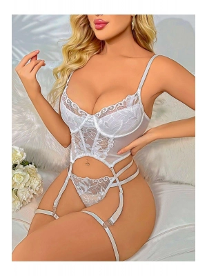 Beyaz Göğüs İp Detaylı Fantezi Jartiyer Takım