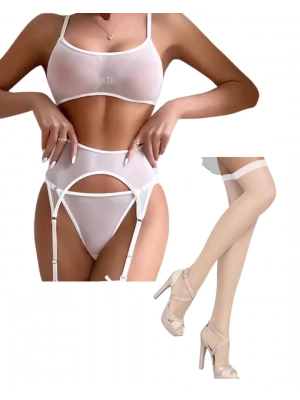 Fantezi Beyaz Transparan Tül Jartiyer Takımı