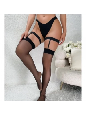 Fantezi Kadın Siyah Dantel Bacak Bantlı String Jartiyer Çorap Takımı