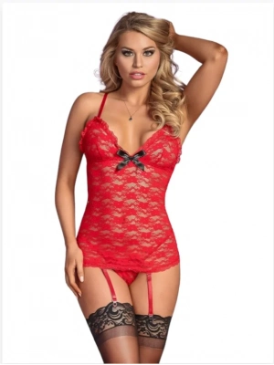 Fantezi Kırmızı Dantelli Jartiyerli Takım