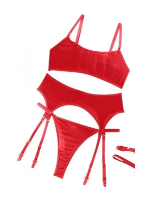 Fantezi Kırmızı Dantelli Fiyonklu Jartiyer Takım