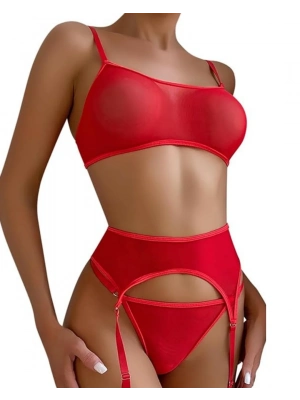 Fantezi Kırmızı Transparan Tül Jartiyer Takımı