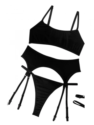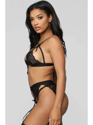Desteksiz Dantelli Siyah Jartiyer Takım