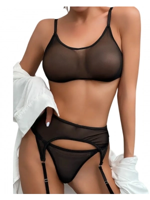 Fantezi Siyah Transparan Tül Jartiyer Takımı