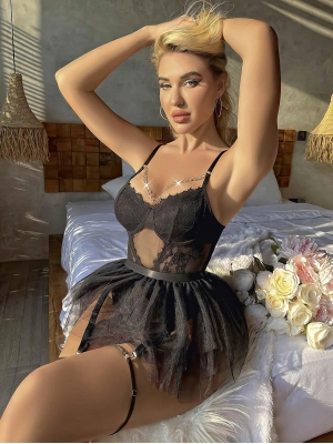 Siyah Tül Etekli Jartiyer Fantezi Takım 2080