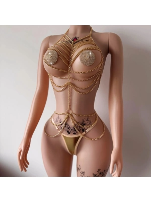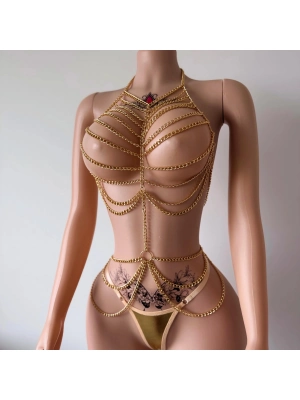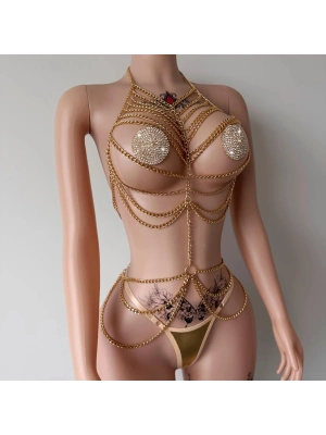 Kadın Seksi Siyah Jartiyer – Dantel Ve Zincir Detaylı Sütyen Külot Takımı