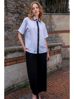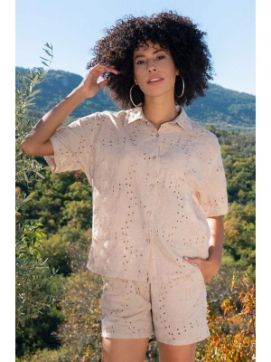 Kordone Nakışlı Kısa Kol Gömlek Kadın 410065