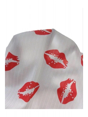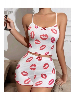 Beyaz Fiyonk Desenli Kalpli Askılı Şortlu Pijama Takım