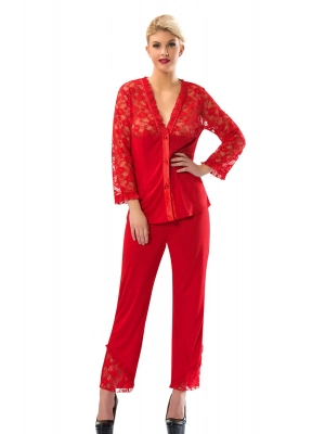 Kırmızı Dantelli Büstiyer İnce Askılı Saten Şortlu Takım
