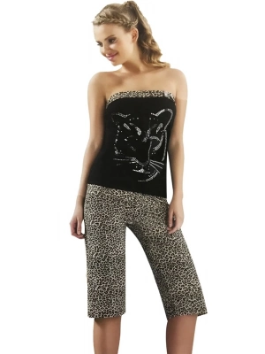 Hmd Kadın Leopar Straplez Kapri Takım 50026