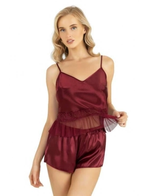 Bordo Saten Şort Takımı 9219