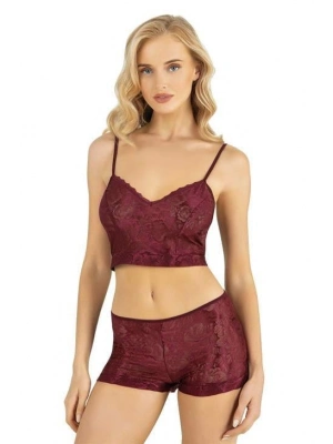 Bordo Saten Şort Takımı 9209