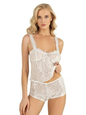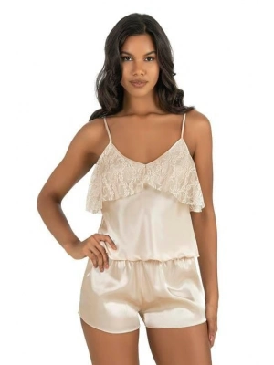 Ekru Saten Şort Takımı 9221