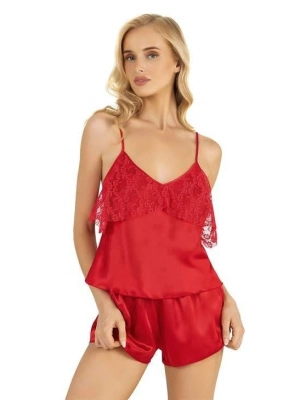 Kırmızı Saten Şort Takımı 9214