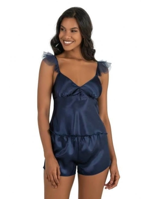 Lacivert Saten Şort Takımı 9222
