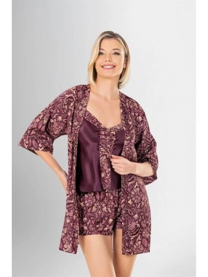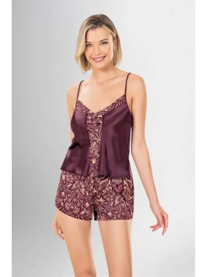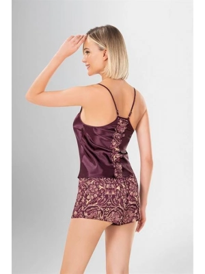 Beruflic Bordo Saten Babydoll Şort Takımı