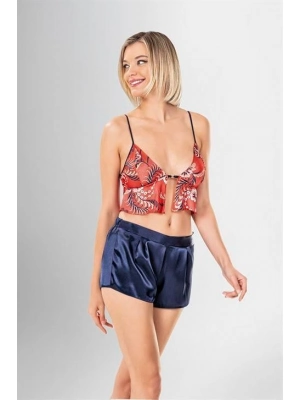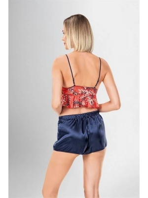Beruflic Lacivert Saten Babydoll Şort Takımı