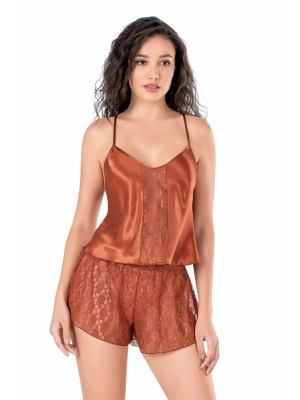 Beruflic Tarçın Saten Babydoll Şort Takımı