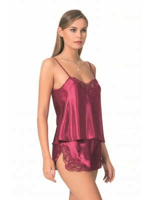 Beruflic Vişne Saten Babydoll Şort Takımı