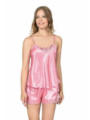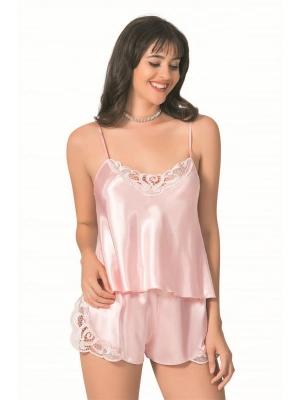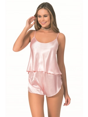 Beruflic Pembe Saten Babydoll Şort Takımı