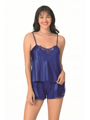 Beruflic Lacivert Saten Babydoll Şort Takımı