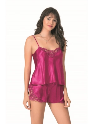Beruflic Koyu Pembe saten Babydoll Şort Takım