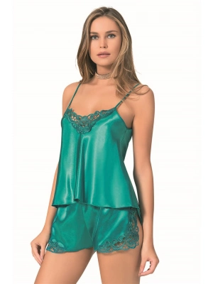 Beruflic Zümrüt Saten Babydoll Şort Takımı