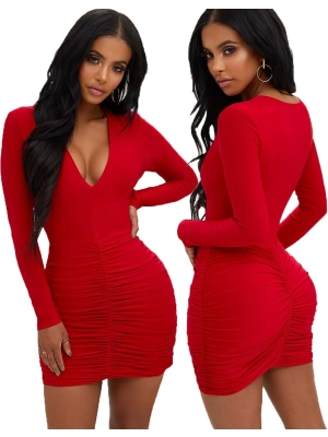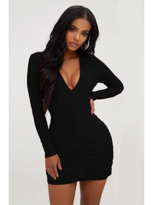 Beruflic V Yaka Yırbrfaçlı Elbise
