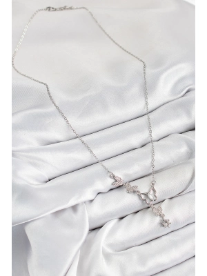 316l Çelik Zirkon Taşlı Kelebek Model Gümüş Renk Kadın Kolye - Bamido
