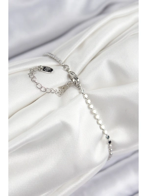 Pirinç Zirkon Taşlı Boncuk Model Ezme Zincir Gümüş Renk Kadın Bileklik - Bamido