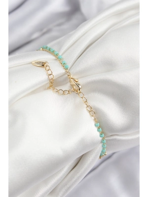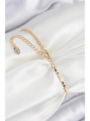 Pirinç Zirkon Taşlı Boncuk Model Ezme Zincir Gold Renk Kadın Bileklik - Bamido