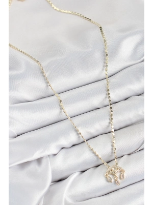 316l Çelik Zirkon Taşlı Kelebek Model Gold Renk Kadın Kolye - Bamido