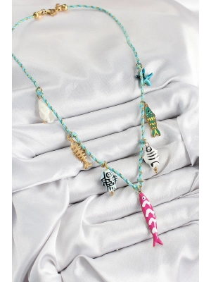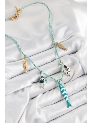 Seramik Motifli Balık Figürlü Model Mavi İp Kadın Kolye - Bamido