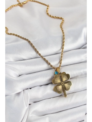 316l Çelik Burgu Zincirli Nazar Detaylı Yonca Model Gold Renk Kadın Kolye - Bamido