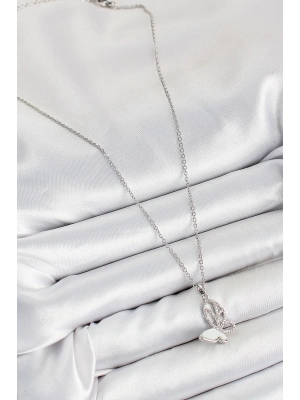 316l Çelik Zirkon Taşlı Kelebek Model Gümüş Renk Kadın Kolye - Bamido