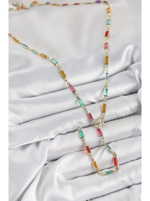 Pirinç Renkli Zirkon Taşlı Dikdörtgen Model Gold Renk Kadın Y Kolye - Bamido