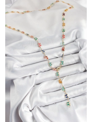 Pirinç Renkli Zirkon Taşlı Kelebek Model Gold Renk Kadın Y Kolye - Bamido