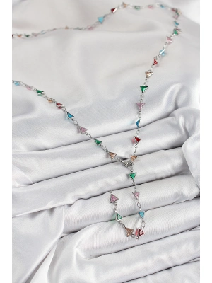 Pirinç Renkli Zirkon Taşlı Üçgen Model Gümüş Renk Kadın Y Kolye - Bamido