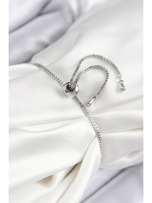Pirinç Zirkon Taşlı Kutup Yıldızı Model Gümüş Renk Asansörlü Kadın Bileklik - Bamido