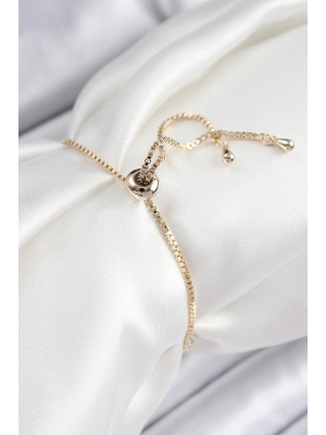 Pirinç Zirkon Taşlı Kiraz Model Gold Renk Asansörlü Kadın Bileklik - Bamido
