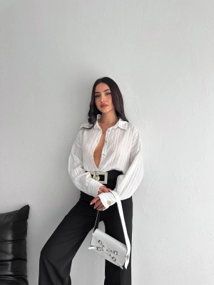Siyah Beyaz Baskılı Crop Gömlek