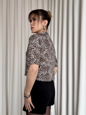 Leopar Desenli Crop Gömlek