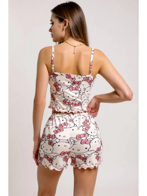 Hello Kitty Baskılı Askılı Şortlu Pijama Takımı
